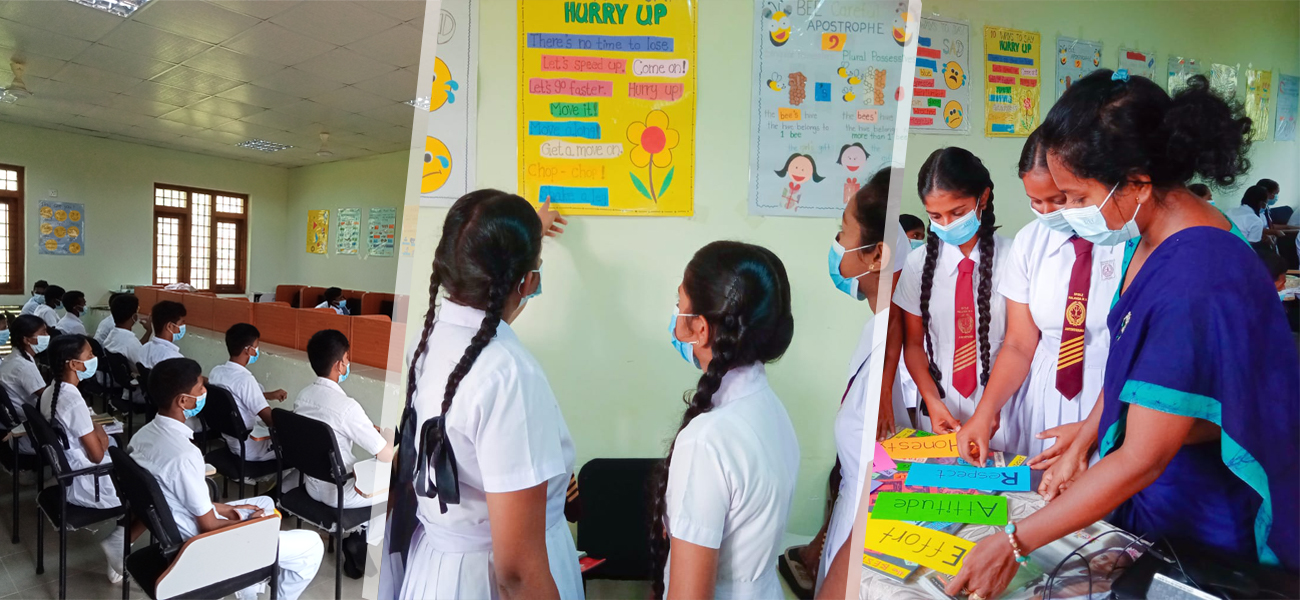 Mahindodaya Language Laboratory consisting of a 20 Computers, LCD screen Television ,10 Tablets with wi-fi facility where students access audio or audio-visual materials.
